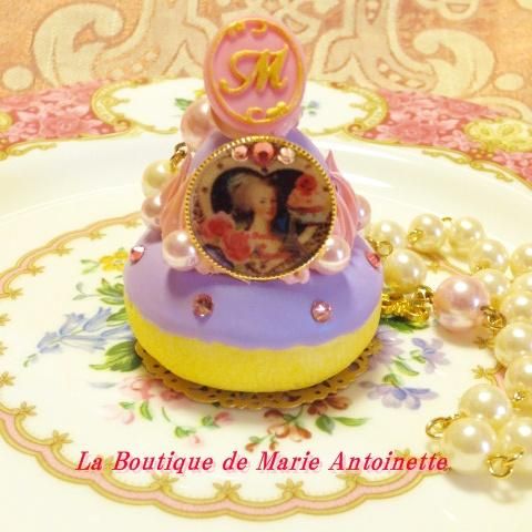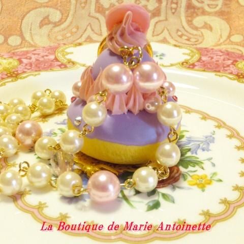 マリー・アントワネットのルリジューズネックレス。violet。本体約6×4cm。パールチェーン約46cm(アジャスター付)。フランス伝統菓子のコロンと可愛いルリジューズネックレス。とてもcuteな印象に♡♡ゴシック&ロリータバイブルVol.51掲載商品☆