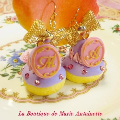 小さいルリジューズのピアス♡ Marie AntoinetteのMとAのイニシャルがついています。 リボンまでの高さ約4cm。